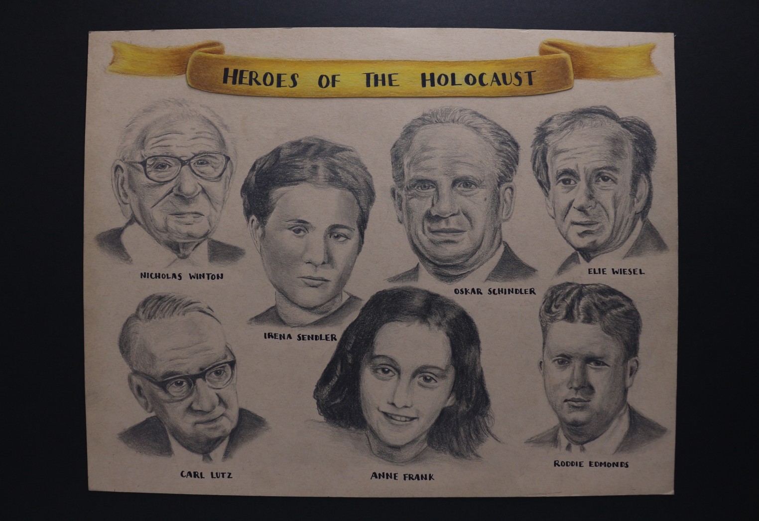 My artwork honors the memories of seven notable figures from the Holocaust. I chose these people because they all had played a significant role in the preservation of Holocaust history. Some were protectors who risked their lives to save thousands of Jews, while others shared their experiences of the Holocaust through writings that continue to to be read to this day. It is important to remember the Holocaust through the eyes of these heroes who had demonstrated such bravery and generosity. Overall, I hope my drawing inspires the viewer to learn more about their stories and the importance of their actions.