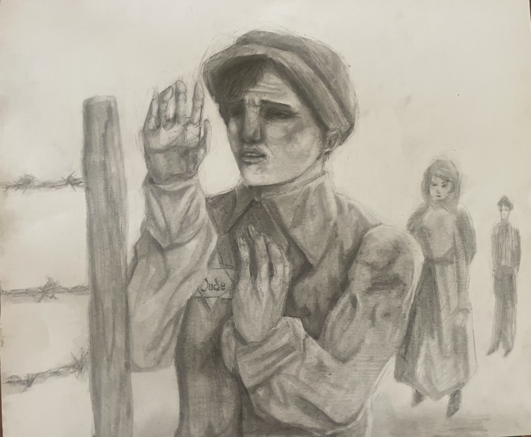 I chose to make this drawing to show how the Jewish people were treated during the Holocaust. It didn’t matter if someone was only a child, if they were Jewish, then they were persecuted. These children were hated and abused by non-Jewish people for doing nothing wrong. They had to leave their homes, their synagogues, their friends, and their communities and were deported to concentration camps. Once there, most children didn’t survive. The ones that did survive were beaten, starved, and humiliated and had no way to escape. Human beings should never treat each other this way. I hope that everyone can look at what the Jewish people went through during the Holocaust and make sure something like that never happens again.